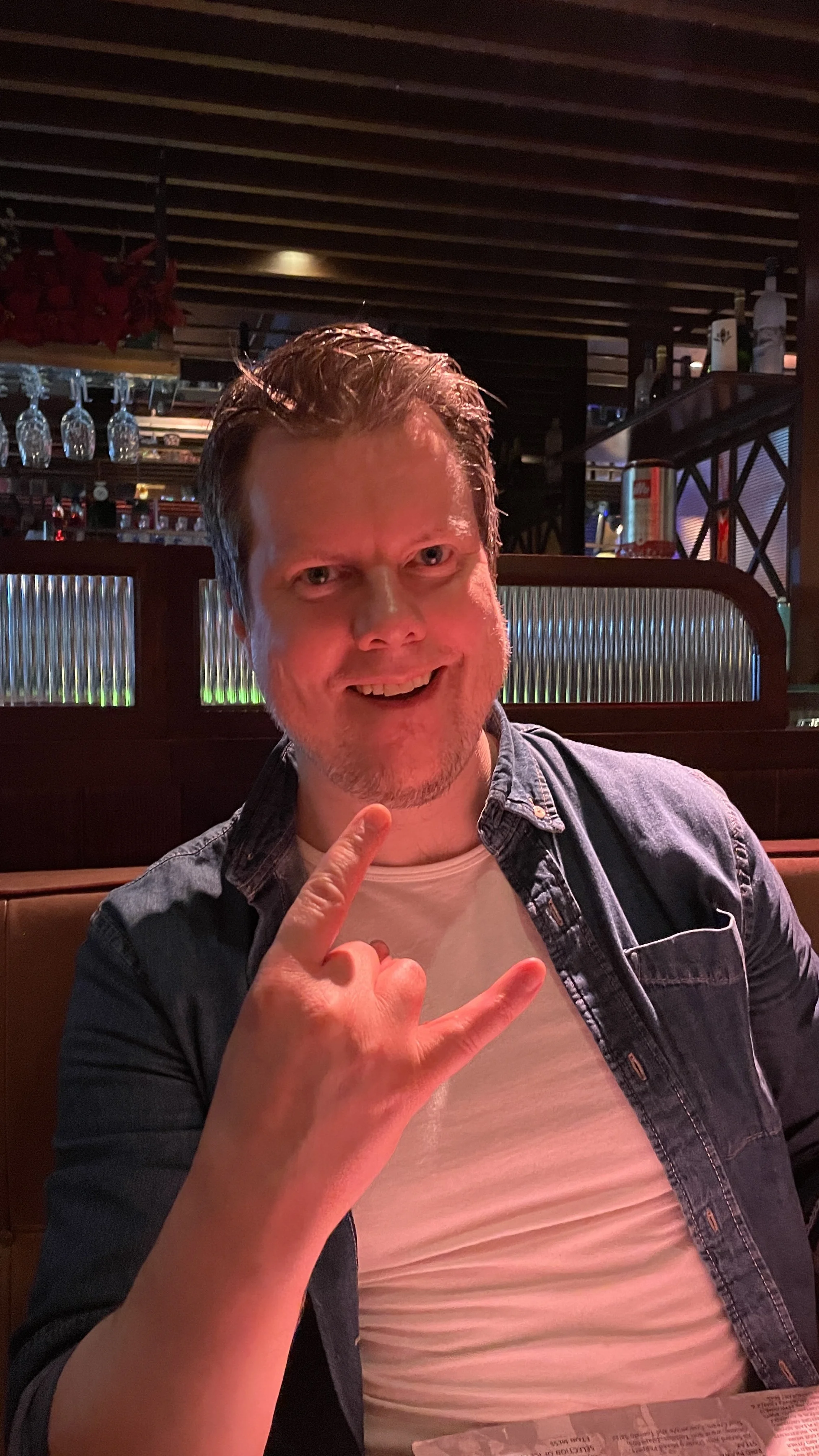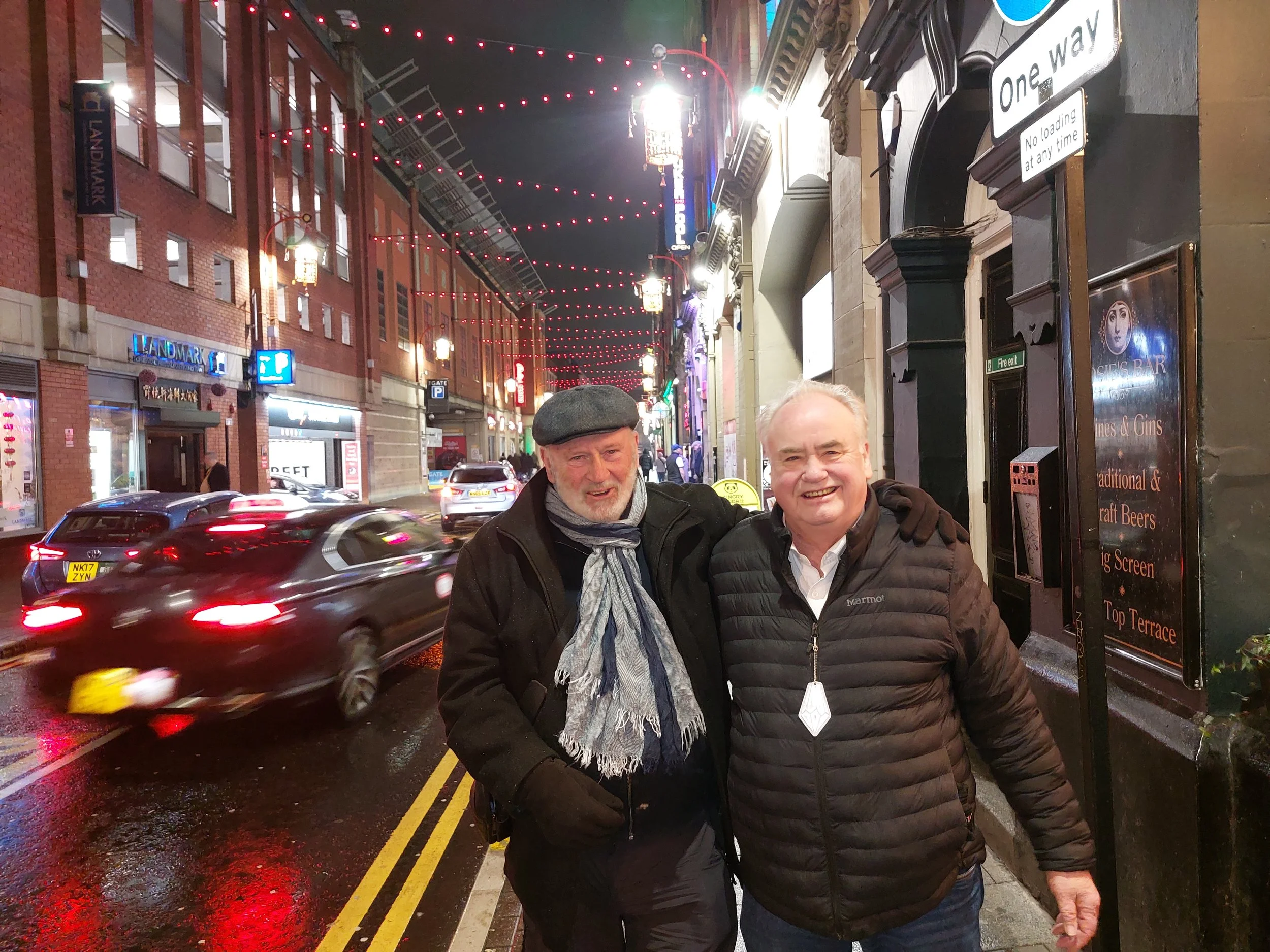 Áður en kvöldinu lauk barst óvæntur gestur á hótelið. Vinur Gísla, sem starfaði sem umboðsmaður Sting og vinnur með forkólum menningar í borginni, The Animals og Bryan Ferry og fleiri, kom við. Allt listafólk með rætur í borginni. Það var viðeigandi að enda kvöldið á samtali um tónlist, sögu og tengsl við staðinn og hafði kallað okkur hingað.