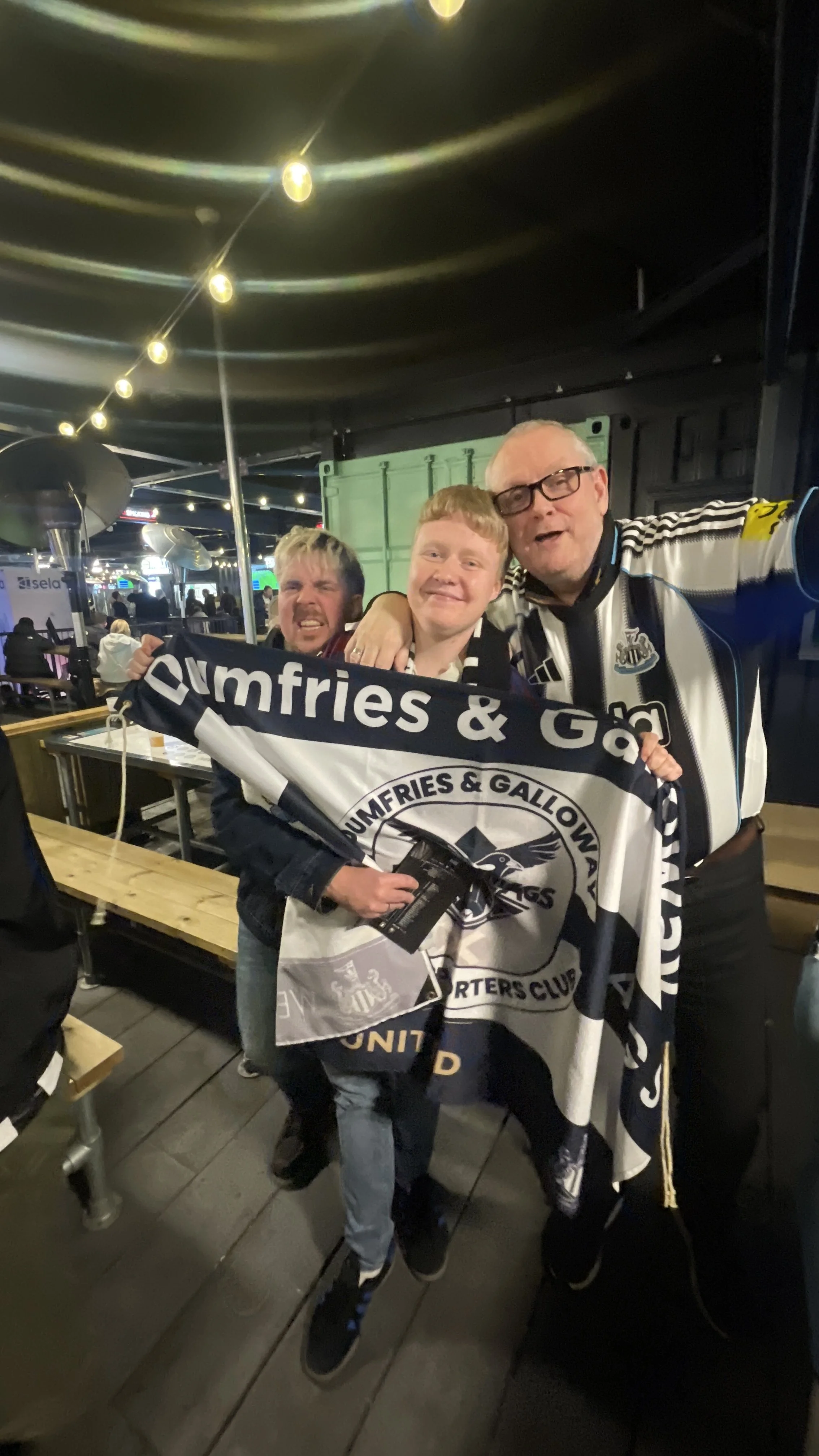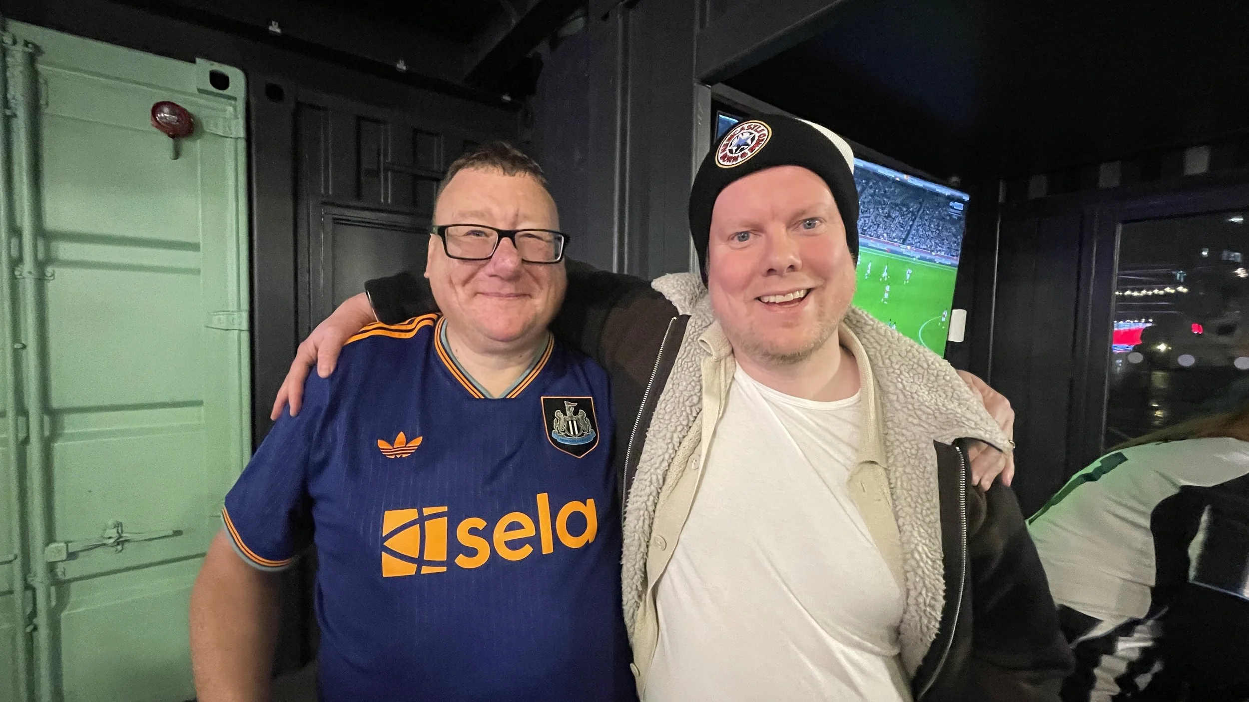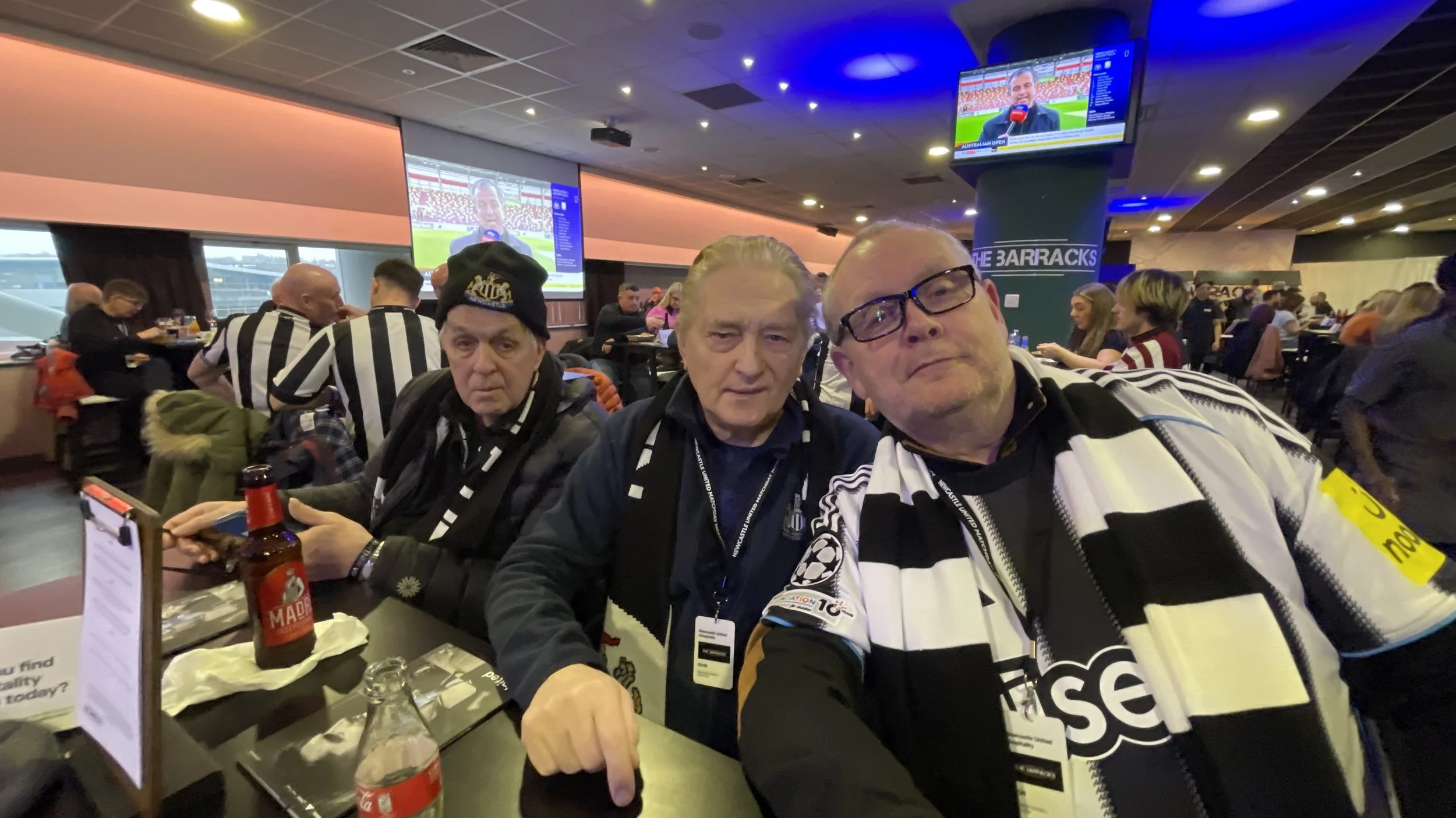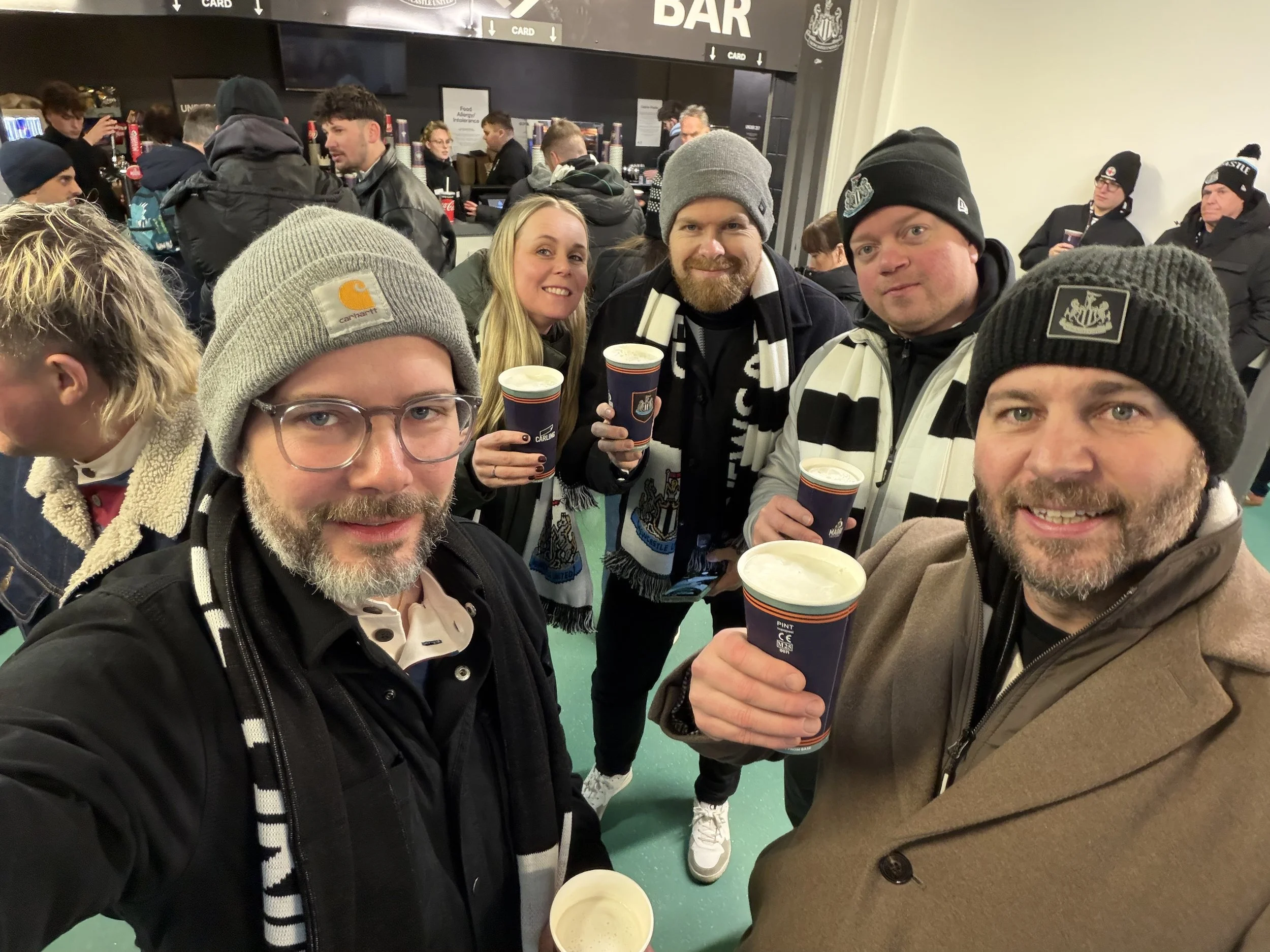 Að fundi loknum hittist hópurinn á Stacks, fan-zone rétt fyrir utan St. James’ Park. Klúbburinn hafði útvegað öllum hópnum VIP-aðgang og þar hittum við bæði Wor Flags og stuðningsmenn frá öðrum löndum, meðal annars frá Belfast og Baltimore. Í raun var þarna samankomið alþjóðlegt tengslanet fólks sem styður sama félag, þótt tungumálin séu ólík. Tengiliður félagsins við erlenda klúbba dreifði fríum treflum. Þrír tímar í leik.