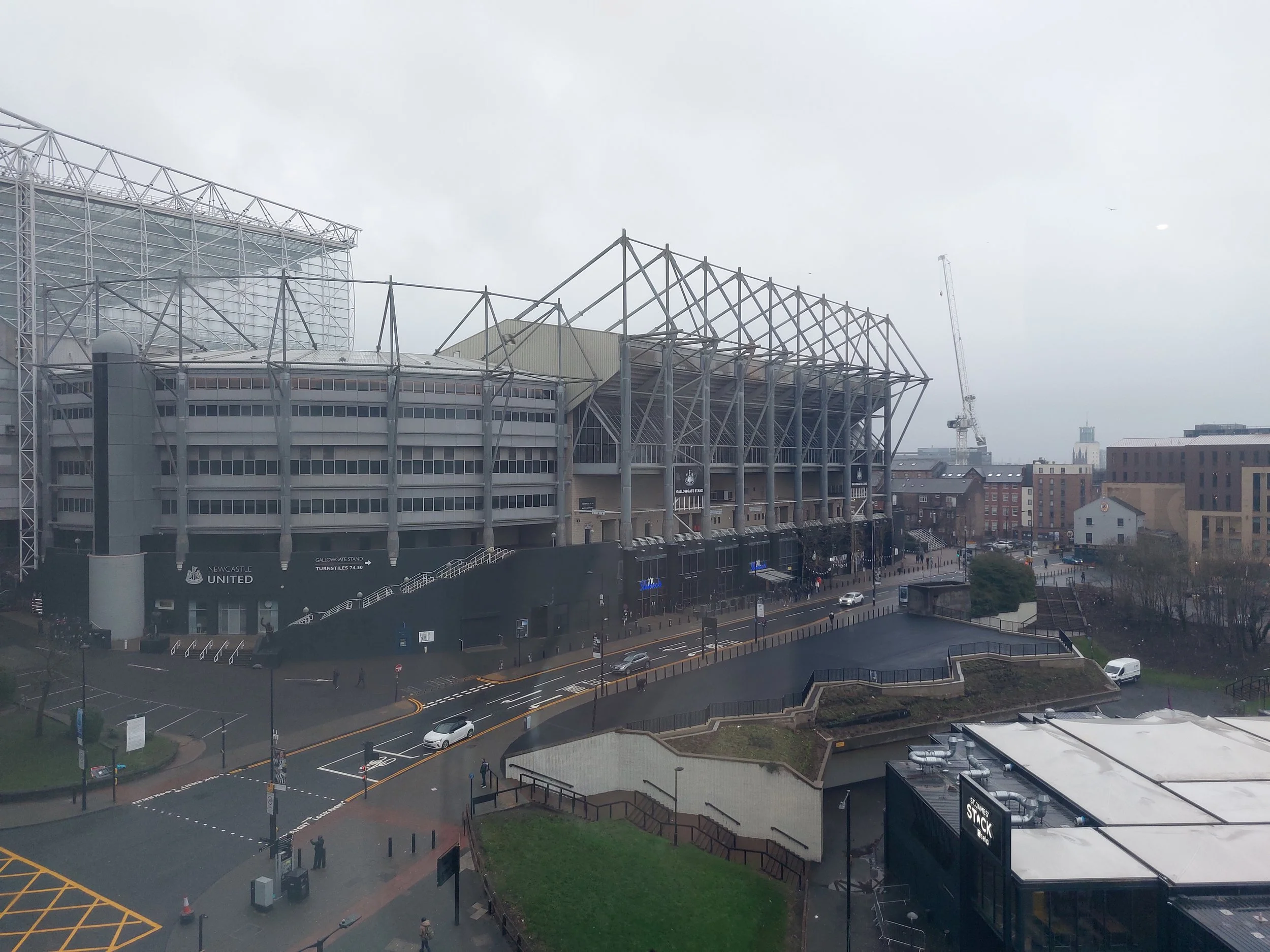 Laugardagsmorguninn rann upp yfir Sandman-hótelinu með St. James’ Park nánast í seilingarfjarlægð. Hofið blasti við úr gluggunum og minnti á hvers vegna við vorum komin.