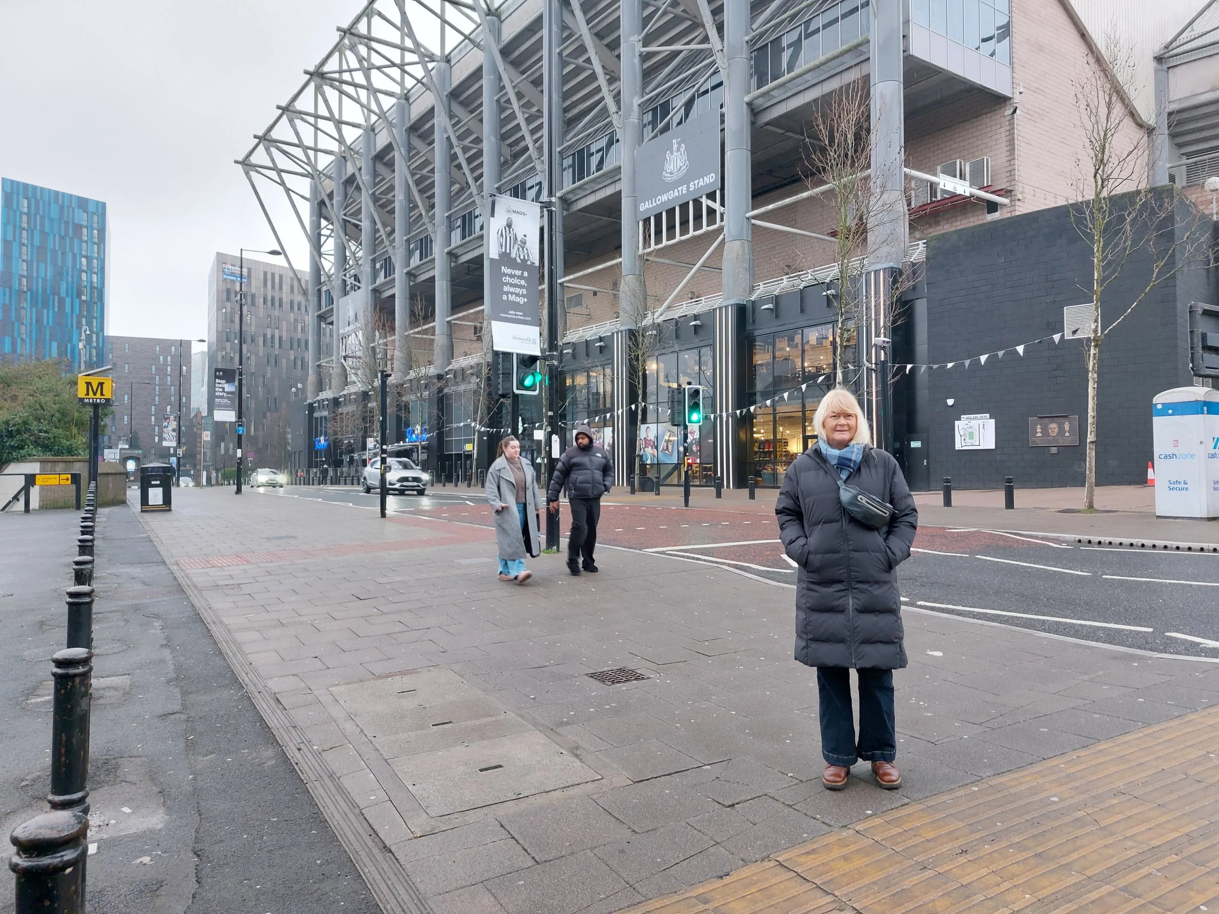 Annar dagurinn snerist um borgina sjálfa. Hluti hópsins fór í leiðsögn um St. James’ Park með Carol, sem sagði sögu vallarins af yfirvegun og þekkingu. Sonur hennar tekur þátt í hlaðvarpinu NUFC Matters sem Magnúsi Tindri er líka hluti af.