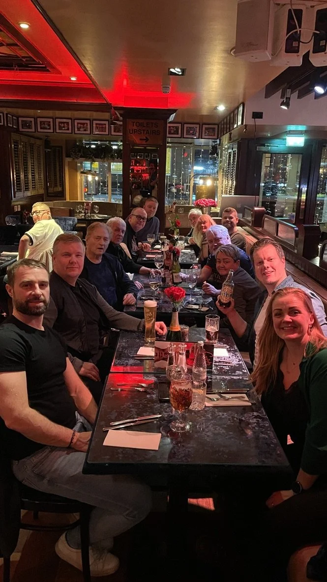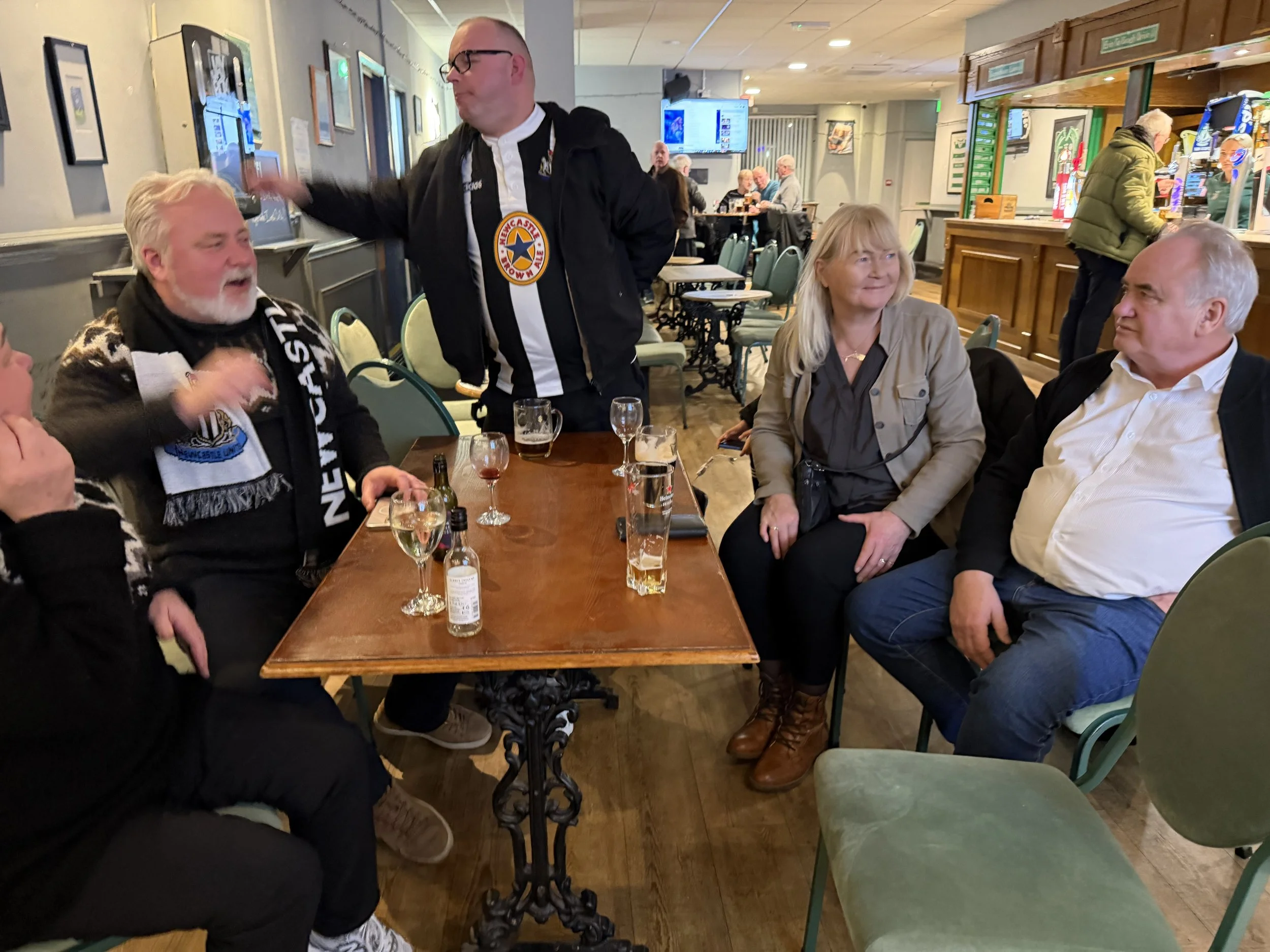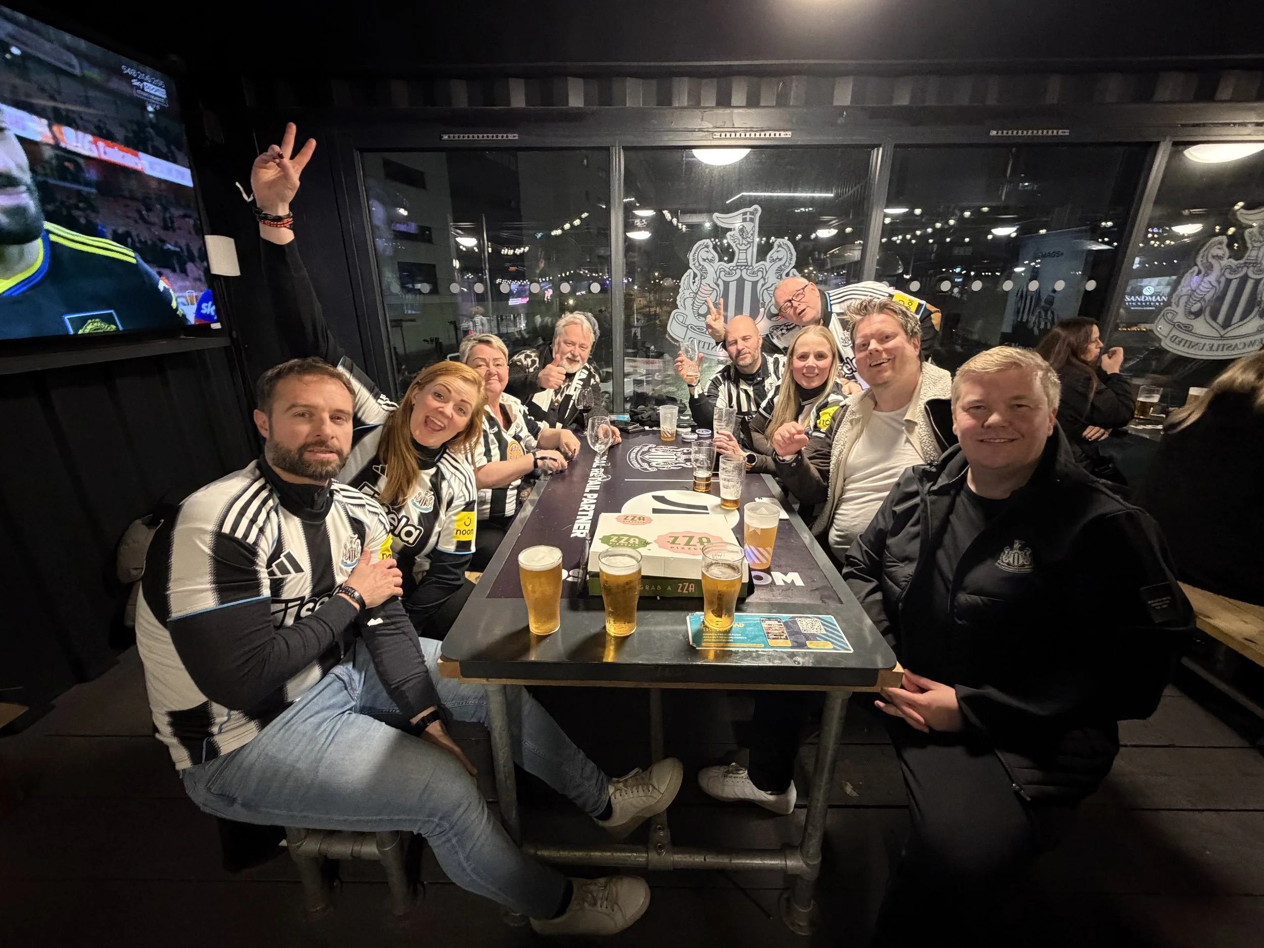 Eftir stutta hvíld hófst föstudagskvöldið á Harry’s þar sem hópurinn sameinaðist flestir. Þar hittum við Rachel og Andy, geordie-sendiherra klúbbsins, sem tóku á móti okkur af þeirri hlýju sem einkennir borgina og borgarbúa.
